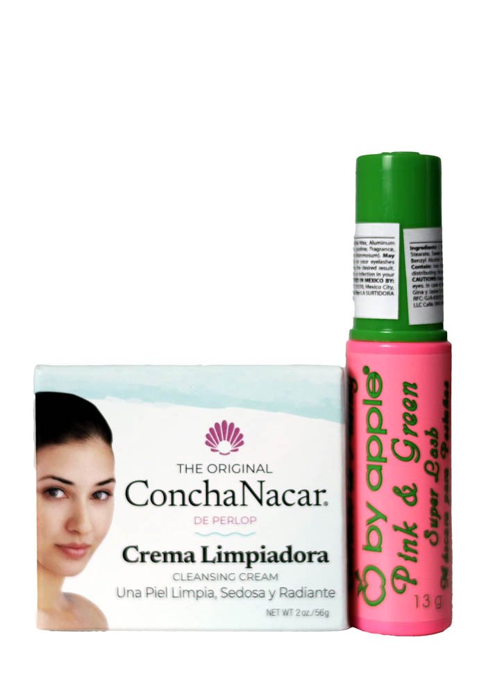 Enhance your lashes and skincare routine with this powerful beauty bundle. The Apple Super Lash Mascara in Mamey extract delivers volume, length, and definition with a smooth, clump-free finish. Paired with Concha Nacar Cleansing Cream, it helps cleanse, brighten, and refresh your skin for a healthy glow.