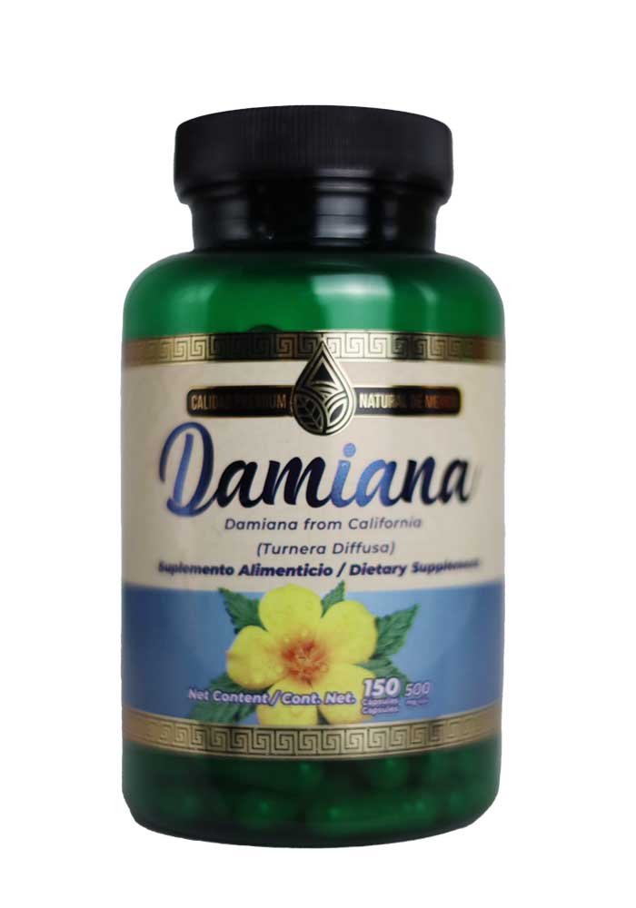 Cap Natural de Mexico Vaso Damiana California/Mental Estomacal Afrodiciatico (150ct/500mg)