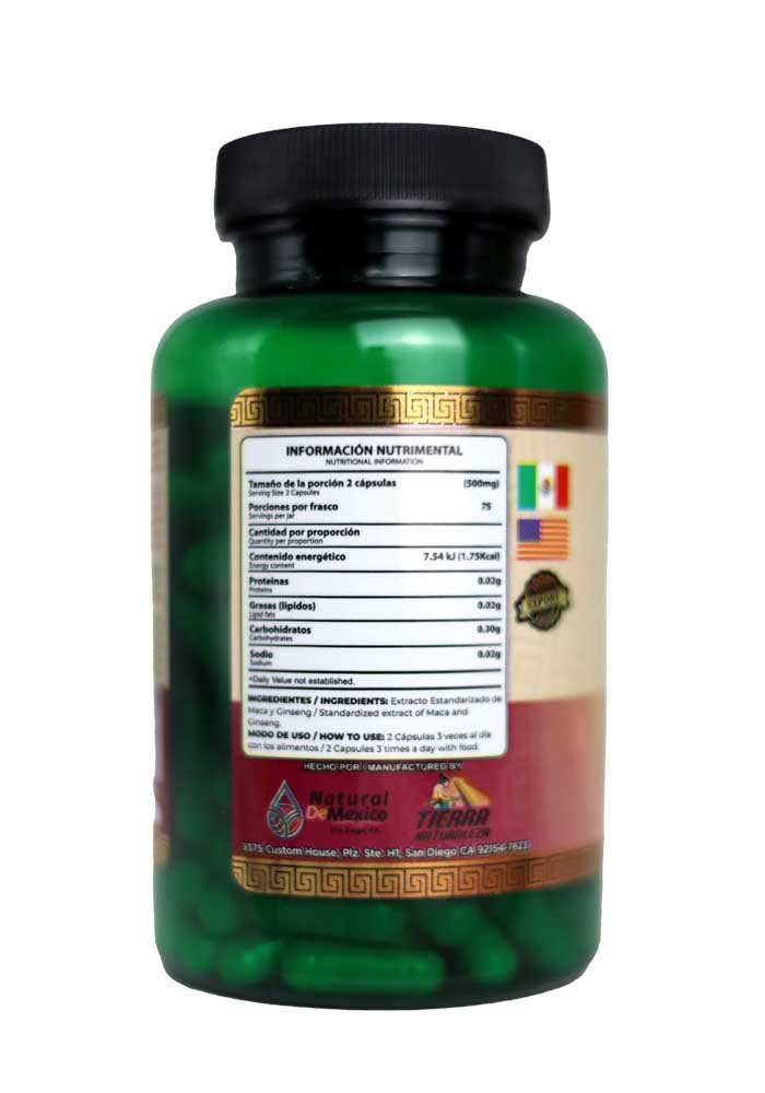 Cápsulas Natural de Mexico Vaso Maca Forte Ginseng (150ct/500mg)